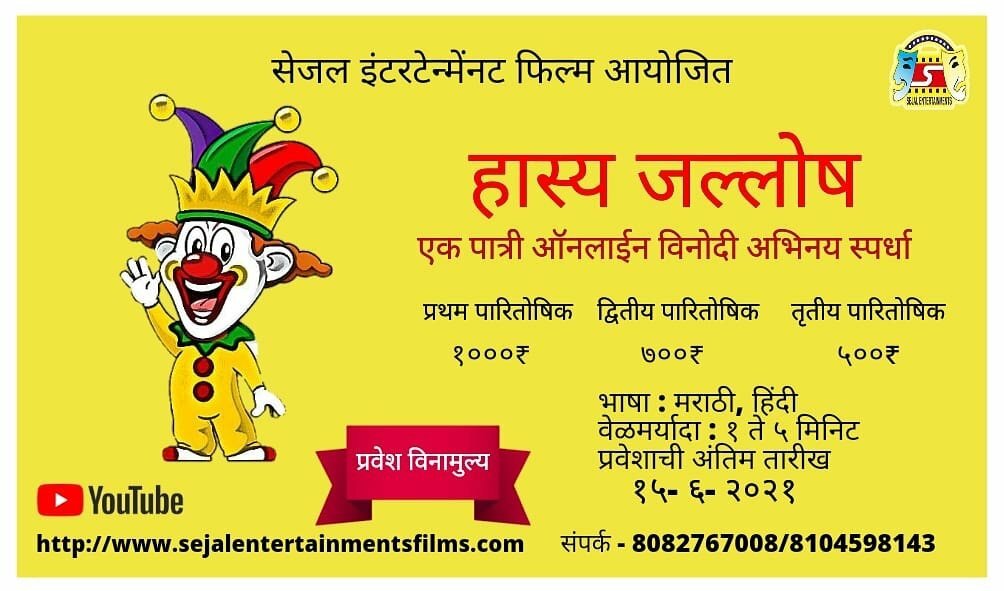- वेळमर्यादा: व्हिडिओची वेळमर्यादा २ मिनिटांपेक्षा कमी नसावी. कमीत कमी २ ते जास्तीत जास्त १० मिनिटांचा विडिओ ग्राह्य धरला जाईल.